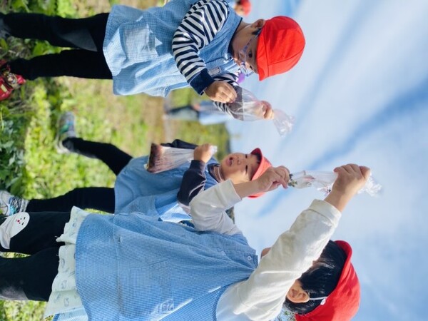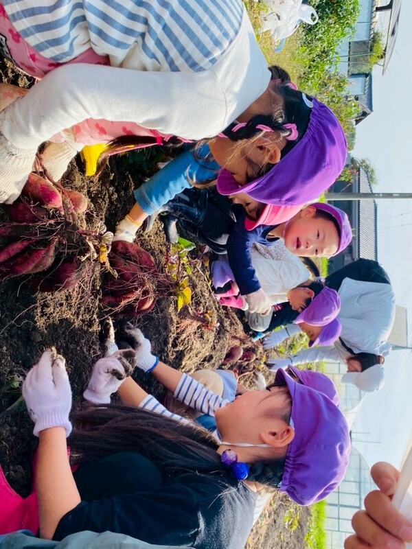 近所の方のご厚意でたくさんの大きなおいもがほれました!帰り道はおいしいさつまいも料理の話で大盛り上がりでした♪