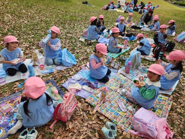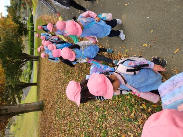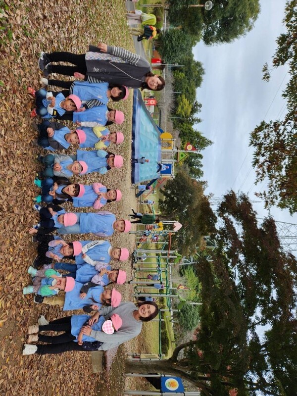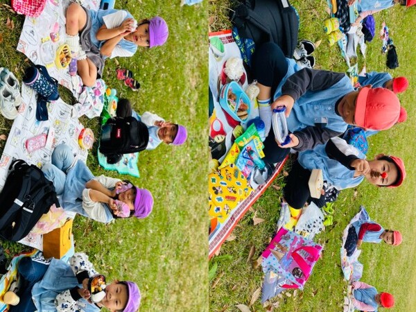 3歳児はバスを降りて公園へGO!遊具で遊び落ち葉遊びも楽しみました。待ちに待ったお弁当に大喜びの子ども達★朝からご準備ありがとうございました!