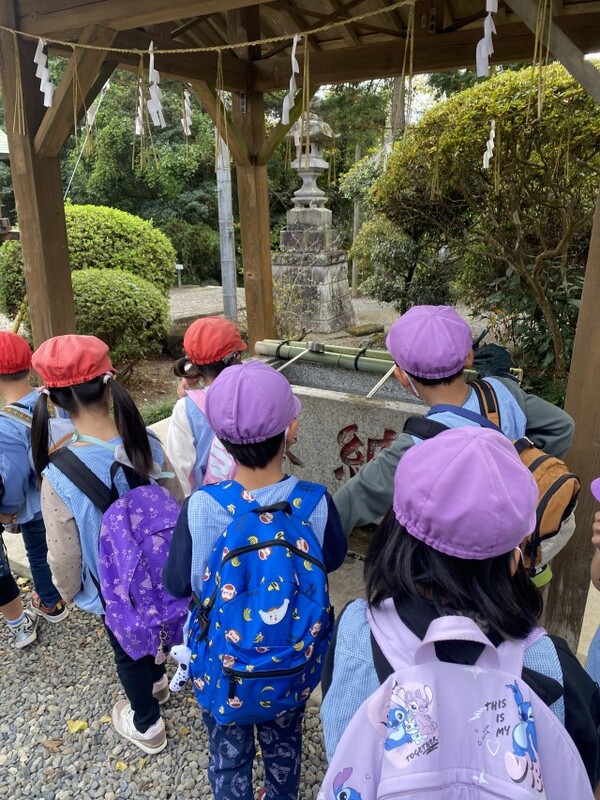 さざんか・さくら組は静神社を参拝し、しっかり手を合わせてきました。