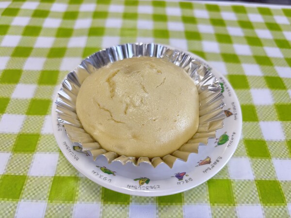『三色蒸しパン』はいちごジャムと抹茶で色付けしました