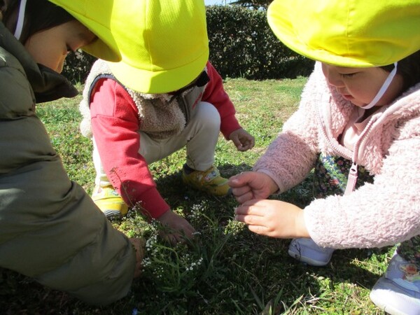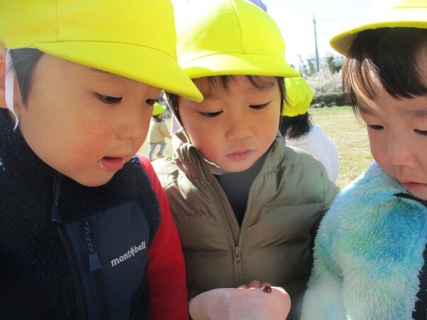 寒かった冬から暖かな春へ…。色とりどりの花が咲き、生き物も顔を出し春を感じられるようになりました。お友だちと一緒に見たり観察したりと会話も弾みます。