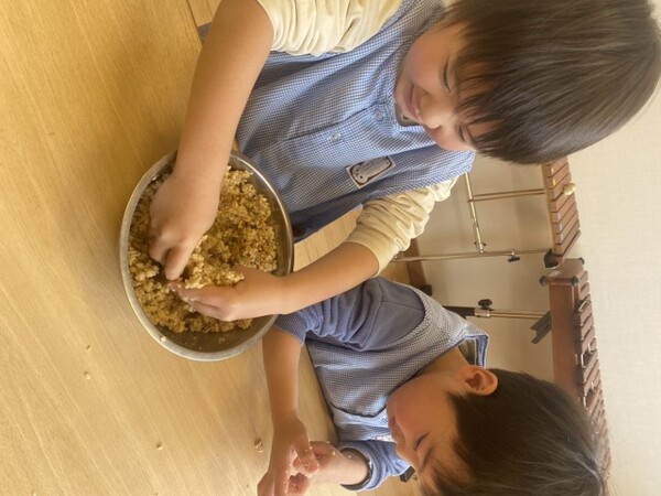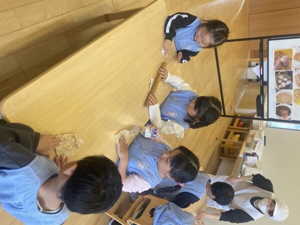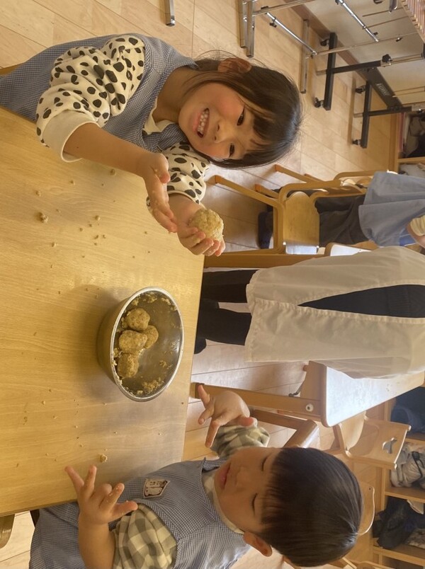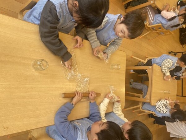 「べたべたするー」「おまめのにおいがするね」と色々なつぶやきが聞こえてきました。