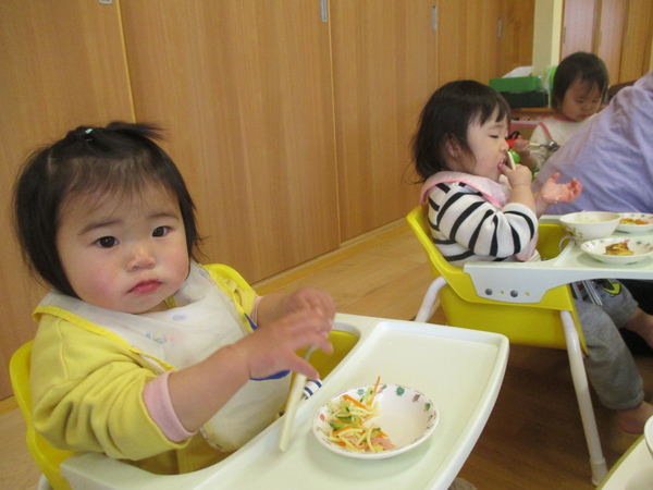 手掴み、スプーンと個々の成長に合わせて、美味しく食べています!