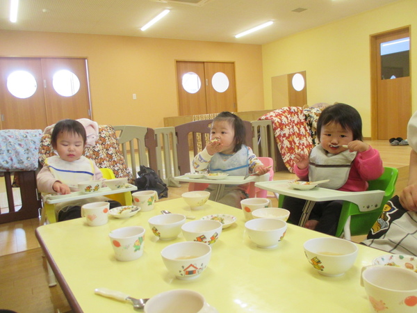 たくさん遊んだ後は、お腹も空いて、給食は大喜び♪