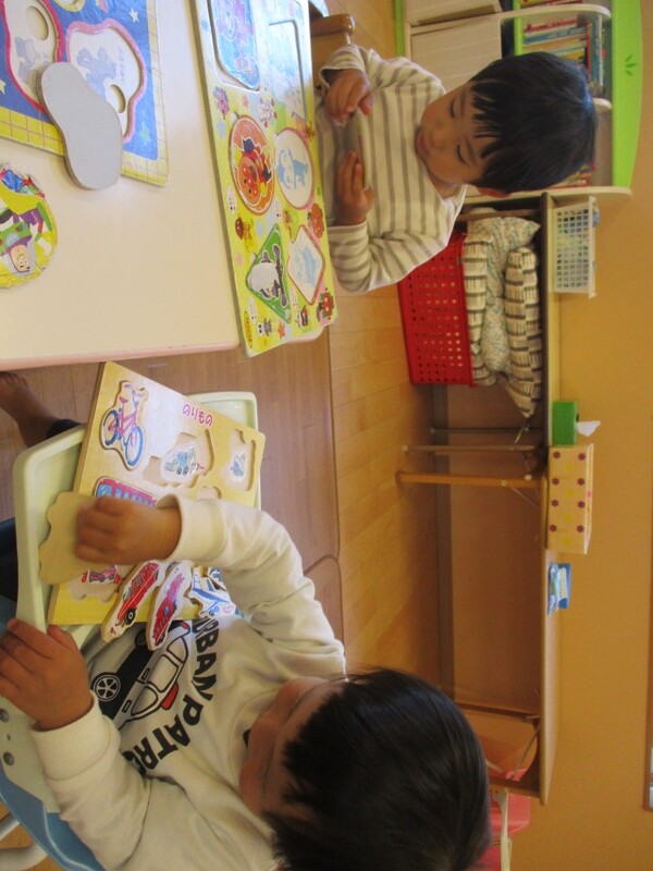11月のすずらん組では、自分で出来る事を楽しみながら過ごしています。保育士と一緒に身支度を整え、パズルや散歩を楽しんでいます。