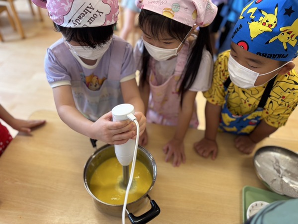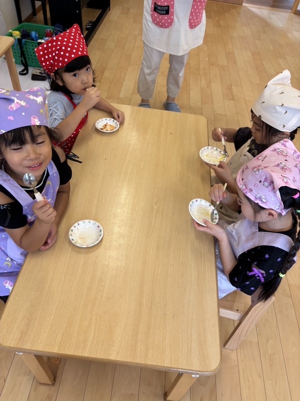 今日は楽しみにしていた野菜パーティー!野菜の下処理はグループごとに協力して、上手に出来ました!!2回目のクッキングは慣れた手つきで、余裕が少し見られました!